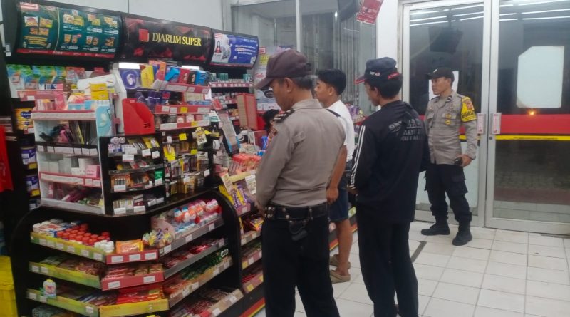 Patroli Malam Polsek pangenan Polresta Cirebon Polda Jabar, anggota jaga malam Dialogis dengan karyawan Alfamart Desa Pengarengan kecamatan Pangenan.