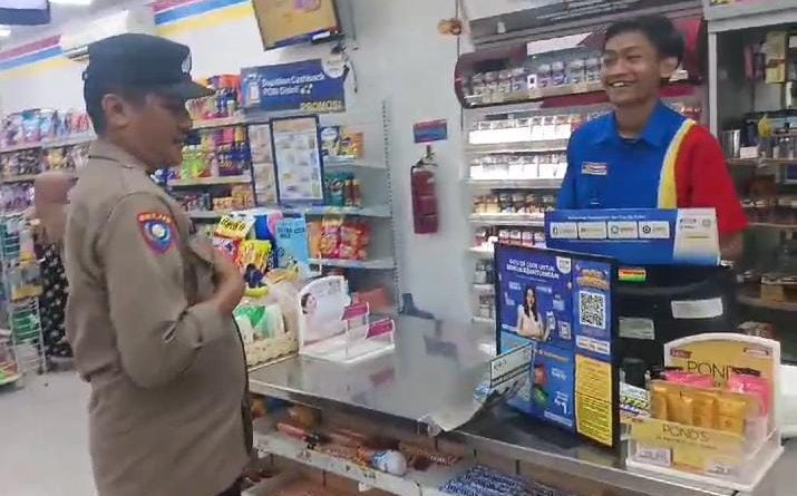Patroli Objek Vital ke minimarket Anggota Polsek Pabedilan Polresta Cirebon sampaikan Himbauan Kamtibmas