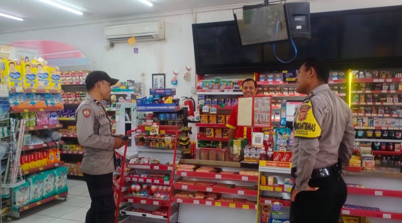 Patroli Polsek pangenan Polresta Cirebon Polda Jabar, anggota jaga malam Dialogis dengan karyawan Alfamart Desa Bendungan kecamatan Pangenan.