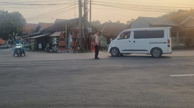 Patroli Polsek Susukan Polresta Cirebon laksanakan gatur pagi di perempatan Bunder antisipasi rawan macet.