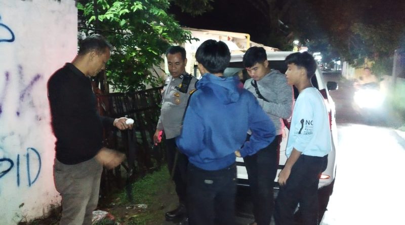 Giat Kepolisian dlm rangka cegah tangkal gangguan Kamtibmas ,antisipasi C3, Genk motor dan tawuran menyampaikan himbauan kepada para pemuda yang nongkrong agar segera membubarkan diri .