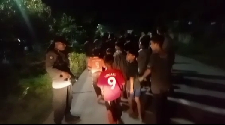 Giat Kepolisian dlm rangka cegah tangkal gangguan Kamtibmas ,antisipasi C3, Genk motor dan tawuran menyampaikan himbauan kepada para pemuda yang nongkrong agar segera membubarkan diri .