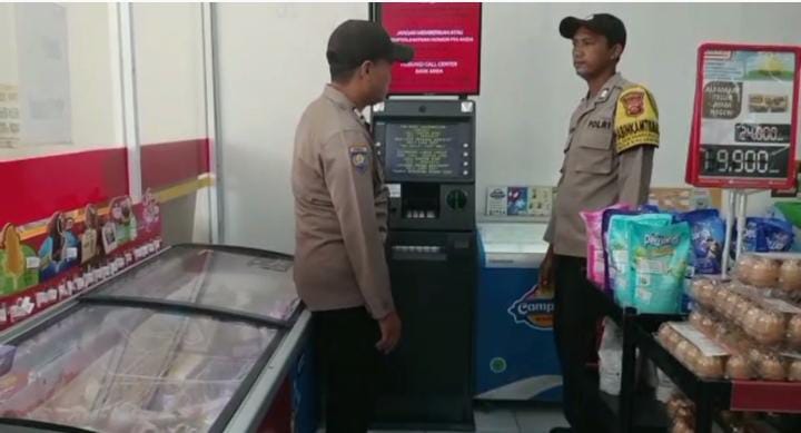 Anggota Patroli Polsek Panguragan dan Anggota Babinkamtibmas Aiptu Hendra gunawan dan Brig Hasbi asidki melaksanan patroli siang hari ke tempat-tempat Obyek Vital seperti dipertokoan Alfamart, Indomart, Bank Bri, Kantor Pos, Pegadain berikut tempat sekolah di Wilayah hukum Polsek Panguragan Kec. Panguragan kab. Cirebon