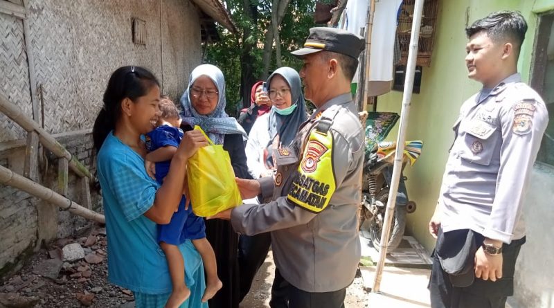 CIREBON – Kapolsek Pabuaran Polresta Cirebon AKP Much. Soleh, SH. bersama anggotanya didampingi Bidan Desa Sdri. Fuji Asriyanti, AMd Keb. dan Kader Posyandu mengunjungi anak asuh stunting di Dusun 01 Rt. 002 Rw. 001 Desa Ciledug Wetan Kec. Ciledug Kab. Cirebon untuk memberikan makanan berupa sembako, susu, biskuit dan vitamin kepada Balita Stunting an. Hafidzah Ramadhan (1.6 tahun). Pemberian makanan tersebut bertujuan untuk menunjang tumbuh kembang anak stunting agar tumbuh sehat dan segera terhindar dari gizi buruk.