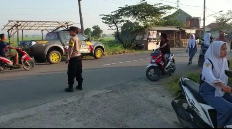Personil Polsek Ciwaringin melaksanakan Gatur Lalu lintas di pagi hari di depan pintu gerbang keluar anak sekolah di Jalan Urip Sumoharjo tepat nya di SMAN 1 Ciwaringin Desa Bringin Kec. Ciwaringin Kabupaten Cirebon, dalam