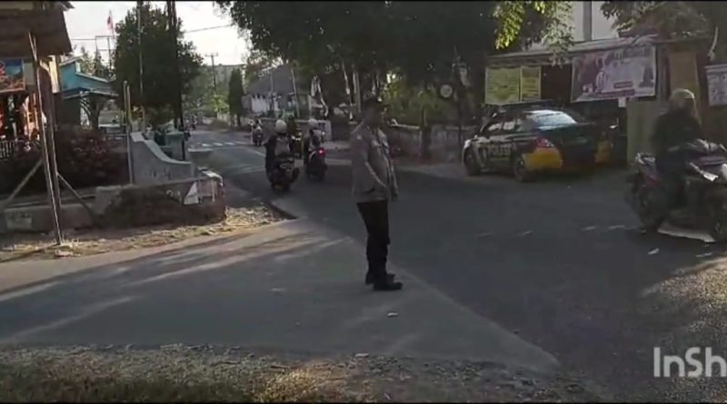 Personil Polsek Sedong Polresta Cirebon Melakukan Pengaturan Lalulintas dan PH di Pertigaan Pasar Sedong