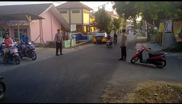 Personil Polsek Sedong Polresta Cirebon Melakukan Pengaturan Lalulintas dan PH di Pertigaan Pasar Sedong