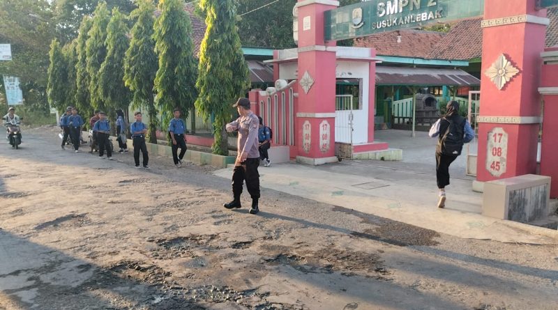 Personil Polsek Susukan lebak Polresta Cirebon Melakukan Pengaturan Lalulintas dan PH di Sekolah SMPN 2 Susukan lebak.
