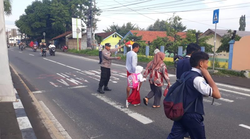 Personil Polsek Plered melaksanakan Gatur Lalu lintas pagi di Jln. Otista tepatnya depan SDN 3 Tegalsari dan SMP N 2 Plered Ds. Tegalsari Kecamatan Plered Kabupaten Cirebon.