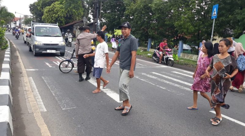 PH. PAGI POLSEK PLERED MEMBERIKAN PELAYANAN KEPADA MASYARAKAT BAGI PENYEBRANG JALAN – Dakhura