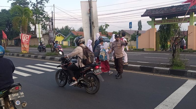 Jajaran Personil Polsek Plered Polresta Cirebon Polda Jabar, melaksanakan Gatur Lalu lintas pagi di depan SDN3 Tegalsari dan SMPN 2 Plered Kec Plered Kab. Cirebon.