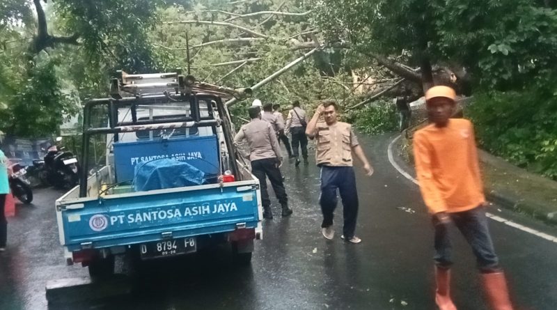 Menurut Aiptu Sudarmono pihaknya selaku Bhabinkamtibmas bersama warga, mengevakuasi pohon tumbang sekaligus membersihkannya dari badan jalan, dan syukur alhamdulillah kejadian tersebut tidak menimbulkan korban jiwa.