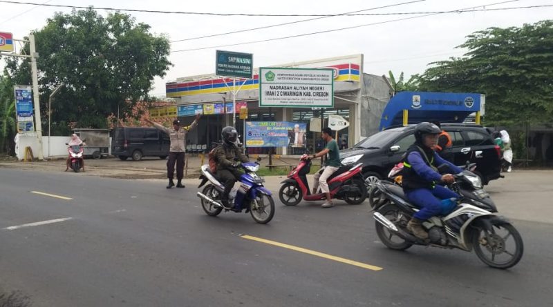 Personil Polsek Ciwaringin melaksanakan Gatur Lalu lintas pagi hari, di Jalan raya Cirebon – Bandung tepatnya di perempatan Blok Kasab Desa Babajan Kec. Ciwaringin Kab. Cirebon