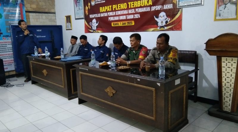 KAB.CIREBON – Bhabinkamtibmas Desa Bobos Polsek Dukupuntang Polresta Cirebon Bripka Endang Permana menghadiri Rapat Pleno Terbuka Rekapitulasi Daftar Pemilih Sementara Hasil Perbaikan (DPSHP) Akhir Pada Pemilu Tahun 2024,Jum’at(02/06/2023).