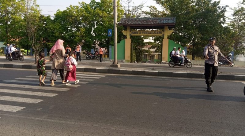 Jajaran Personil Polsek Plered Polresta Cirebon Polda Jabar, melaksanakan Gatur Lalu lintas pagi di Jaln Raya Otista tepatnya di depan SDN3 Tegalsari dan SMPN 2 Plered Ds. Tegalsari Kec Plered Kab Cirebon.