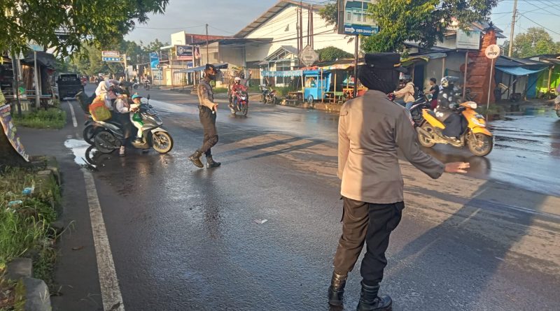 Dalam kesempatan tersebut Anggota melaksanakan pengaturan dan bantu sebrangkan jalan anak sekolah dan warga, guna ciptakan arus lalu lintas aman, tertib dan lancar serta menghindari terjadinya kemacetan maupun laka lantas.