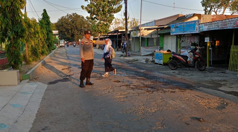 Anggota Polsek Susukan lebak  melaksanakan Gatur Lalu lintas pagi di Jalan  Susukan agung di depan SMPN2 Susukan lebak Kec. Susukan lebak Kab. Cirebon.