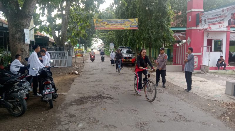 Personil Polsek Susukan lebak Polresta Cirebon Polda jabar, melaksanakan Gatur Lalu lintas pagi di Jalan di depan Sekolah SMPN 2. Susukan lebak.
