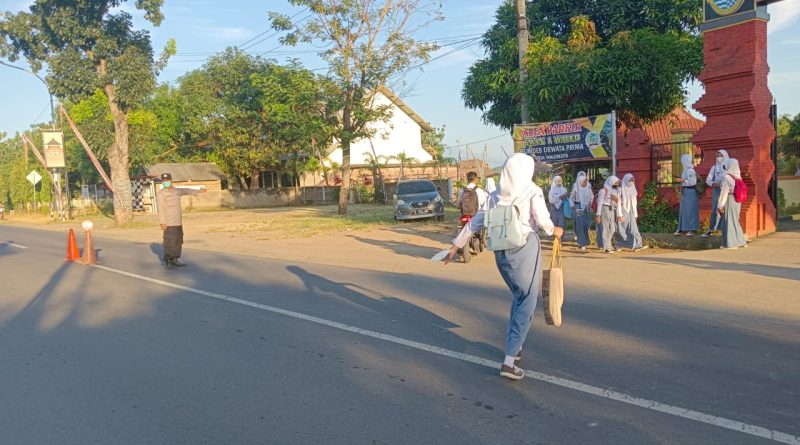 Polsek Waled Melaksanakan Pengaturan Lalulintas Depan SMA Negeri 1dan SMP Negeri 1 Waled