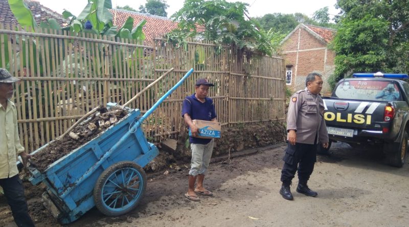 Ps Kanit binmas polsek Astanajapura mengikuti giat jum’at bersih di desa Munjul