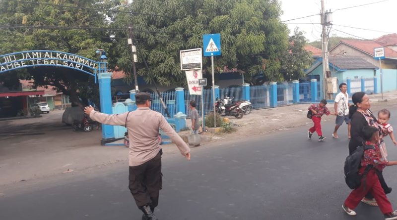 Jajaran Personil Polsek Plered Polresta Cirebon Polda Jabar, melaksanakan Gatur Lalu lintas pagi di Jaln Raya Otista tepatnya di depan SDN3 Tegalsari dan SMPN2 Plered Ds. Tegalsari Kec Plered Kab Cirebon.