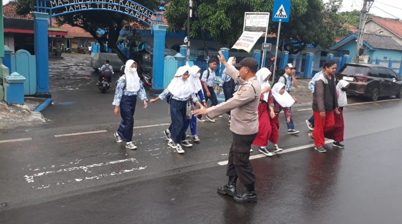Rutinitas Gatur Pagi Polsek Plered Polresta Cirebon Memberikan Pelayanan kepada anak2 sekolah dan masyarakat yang mau menyebrag jalan