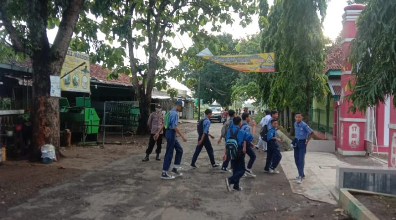 Jajaran Personil Polsek Susukan lebak Polresta Cirebon melaksanakan Gatur Lalu lintas pagi di Jalan raya Susukan lebak depan SMPN2 Susukan lebak Ds. Susukan agung Kec. Susukan lebak Kab. Cirebon.