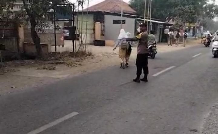 Personil Polsek Panguragan Polresta Cirebon melaksanakan Gatur Lalu lintas pagi hari di Jalan Nyimas Gandasari tepat nya di Depan Smp 1 Panguragan Kec. Panguragan Kab. Cirebon