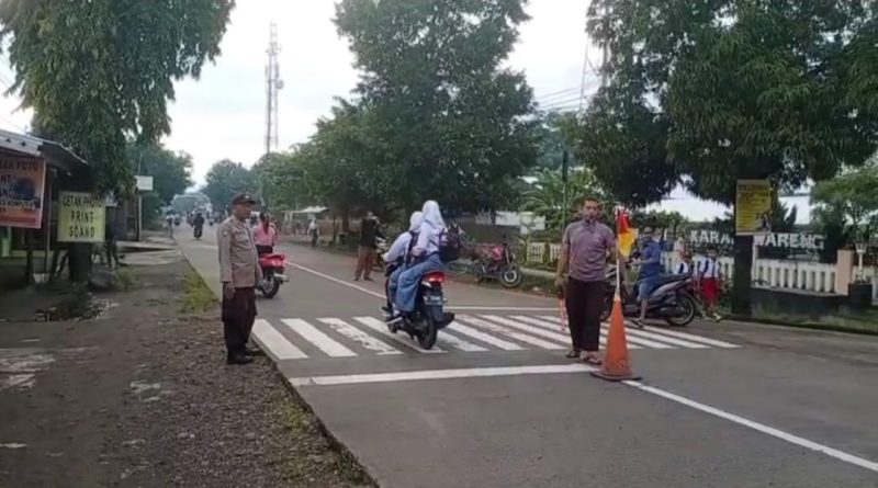 Personil Polsek karangsembung Polresta Cirebon melaksanakan Gatur Lalu lintas pagi di Jalan Karangwareng Kec. Karangwareng Kab. Cirebon