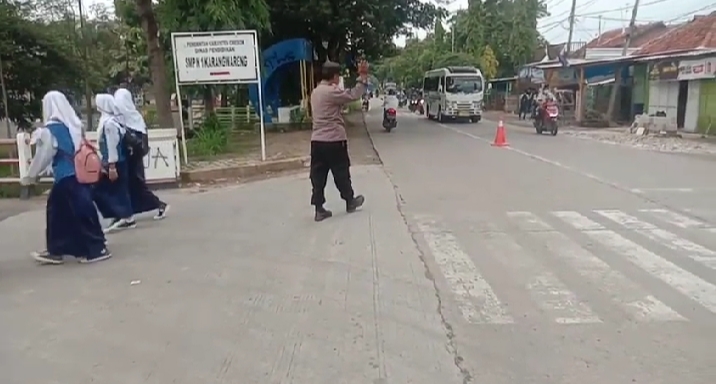 Personil Polsek karangsembung Polresta Cirebon melaksanakan Gatur Lalu lintas pagi di Jalan raya Karangwareng-Kubangdeleg termasuk Desa Karanganyar Kec. Karangsuwung Kab. Cirebon dengan mensosialisasikan dan menghimbau kepada pengguna jalan agar memelihara kamtibmas dan mengudukasi tentang pentingnya mematuhi peraturan lalu lintas untuk mengurangi kemacetan dan angka kecelakaan di jalan raya.