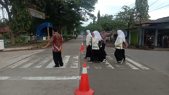 Personil Polsek karangsembung Polresta Cirebon melaksanakan Gatur Lalu lintas pagi di Jalan Karangwareng Kec. Karangwareng Kab. Cirebon