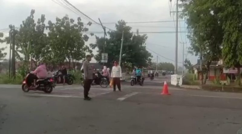 Personil Polsek karangsembung Polresta Cirebon melaksanakan Gatur Lalu lintas pagi di Jalan Karangwareng Kec. Karangwareng Kab. Cirebon