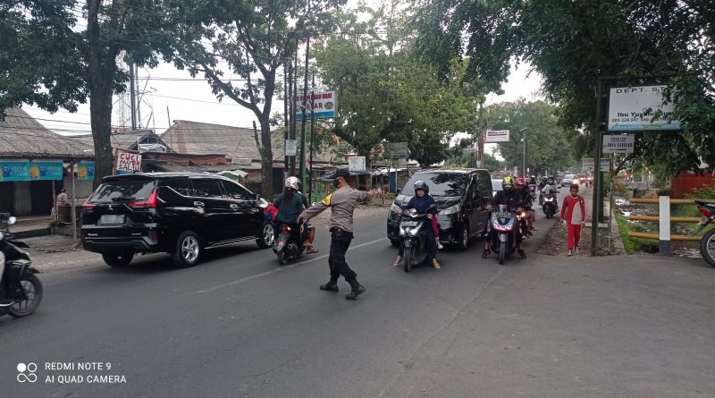 Personil Polsek Talun Polresta Cirebon melaksanakan Gatur Lalu lintas pagi di Jalan Pangeran Cakrabuana Kec. Talun Kab. Cirebon