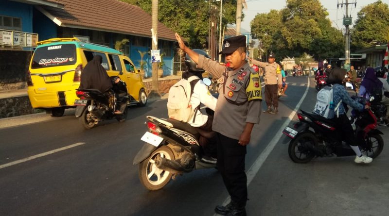 Rutinitas Polsek Dukupuntang Polresta Cirebon, Laksanakan Gatur Pagi Di Depan SMK Manba’ul ‘Ulum Sindangmekar