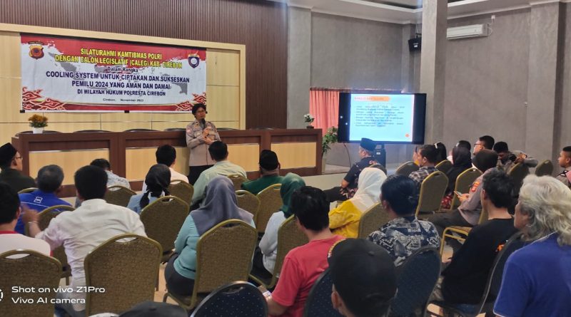 KAB. CIREBON –  bertempat di Meeting Room Universitas Muhammadiyah Cirebon Jl. Fatahillah Kel. Watubelah Kec. Sumber Kab. Cirebon telah dilaksanakan giat Silaturahmi Kamtibmas Polri dengan Caleg dan Simpatisan dalam rangka Cooling System untuk Ciptakan dan Kesuksesan Pemilu 2024 yang aman dan damai di Wilkum Polresta Cirebon, Caleg dari Wilayah Kec. Sumber, Kec. Pangenan dan Kec. Beber Kab. Cirebon, Rabu (22/11/2023).