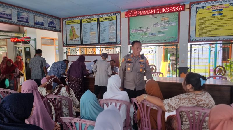 Sinegritas Tiga Pilar Kecamatan Talun, Polresta Cirebon Menghadiri Giat Pemberian Bantuan Pangan Di Balai Desa Kepongpongan