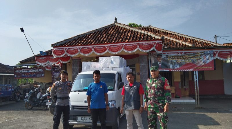 Sinegritas TNI -POLRI anggota TPS Desa Wiyong kawal kotak suara hasil Pemilu 2024 ke kantor PPK. – Dakhura