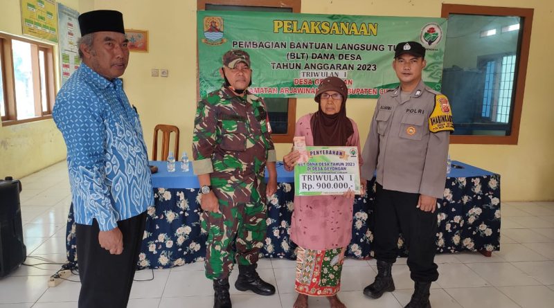 Arjawinangun, Dalam rangka meningkatkan Sinegritas TNI – POLRI, Bhabinkamtibmas Desa Geyongan Bripka Ade Fery Sujarwo bersama Babinsanya memonitor langsung kegiatan penyaluran BLT untuk warga masyarakat desa Geyongan yang tergolong masyarakat tidak mampu, sehubungan dengan adanya kegiatan tersebut Bhabinkamtibmas Desa Geyongan bersama Babinsanya bersama sama memonitor kegiatan tersebut guna menciptakan rasa aman dalam kegiatan penyaluran BLT tersebut kepada masyarakat.