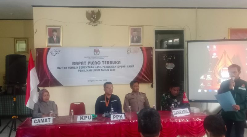 Dalam Rapat Pleno Terbuka Daftar Pemilihan Sementara Hasil Perbaikan di Kecamatan Greged dihadiri Oleh Camat Greged Ibu Ratna Kartika S. AP, Msi, Kapolsek Beber yang diwakili oleh Aiptu Khaerudin, Danramil Beber yang diwakili oleh Serma Tri, Ketua PPK dan dari KPU serta keterwakilan dari tiap- tiap Parpol. Kegiatan ini dilaksanakan pada hari Mnggu siang tanggal 04 Juni 2023.