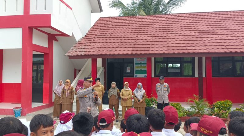 Wakapolsek Waled Polresta Cirebon Iptu Muhroni SH di bantu Kanit Binmas dan Bhabinkamtibmas Menjadi Pembina Upacara di SDN 1 Gunungsari